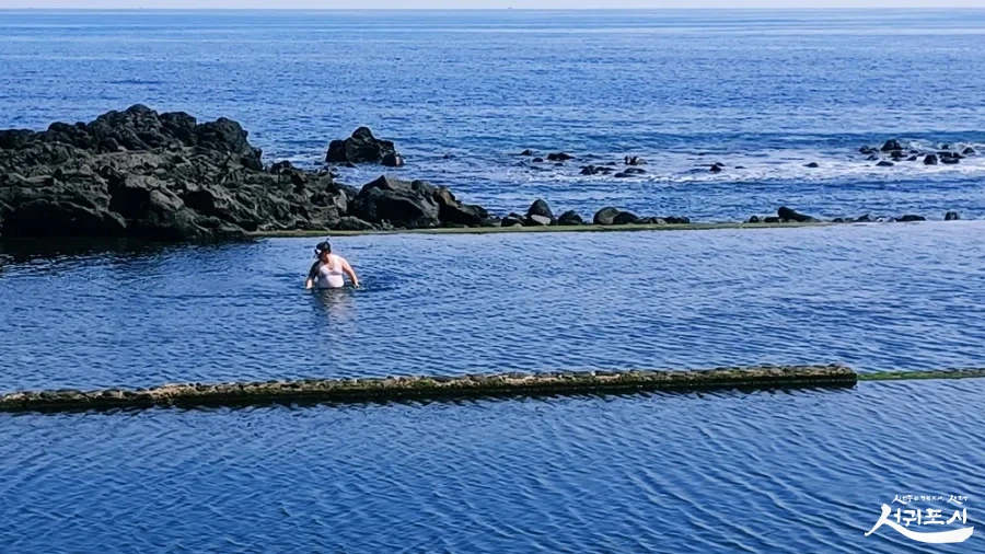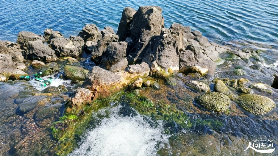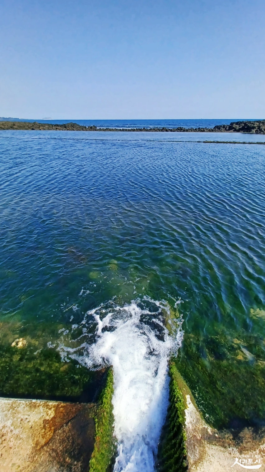 콸콸 솟는 용천수가 바다로 흘러내리는 길목에, 민물과 갯물이 만나기 직전 형성된 천연 해수욕장이 논짓물.