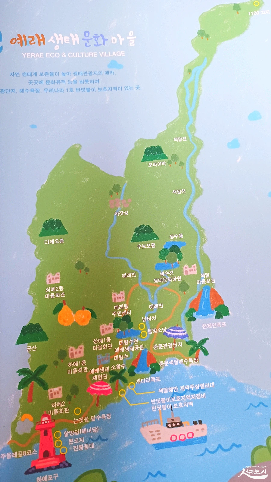예래마을은 천제연폭포와 컨벤션 센터가 있는 중문 관광단지와 예래천 골짜기 둔덕을 사이에 두고 나란히 자리했답니다.