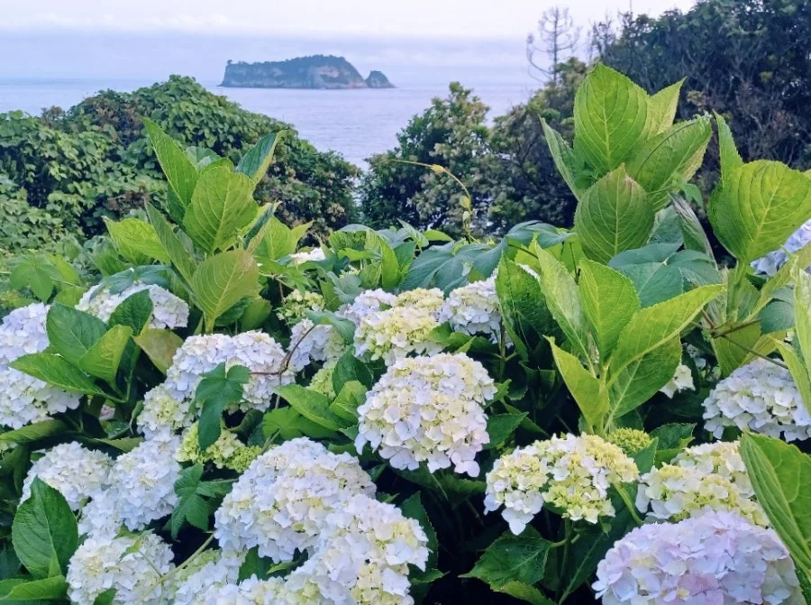 '햇살 가득한 바다뜨락'이라는 긴 이름의 카페인지 별장인지 아무튼 수국만 탐스레 핀 뜰 거쳐 바다 가까운 길로 내려섰다.