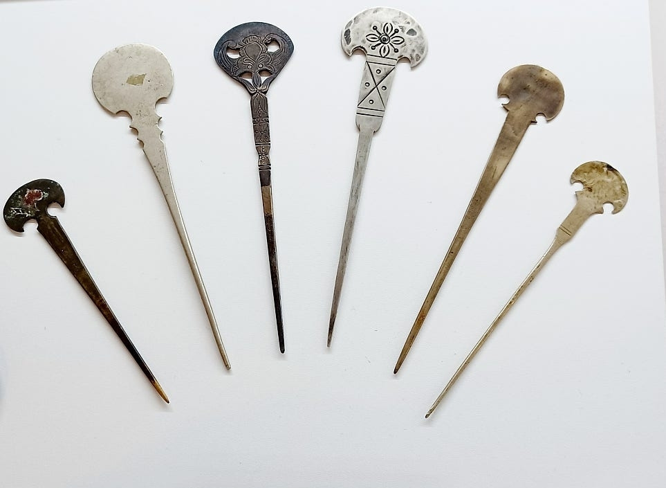 은제 귀이개/ 장식용 비녀인 용잠과 봉잠 외/ 장식용 비녀인 용잠과 봉잠 외/ 가르마 탈 때나 빗살 안의 때 빼는데 쓰이는 빗치개