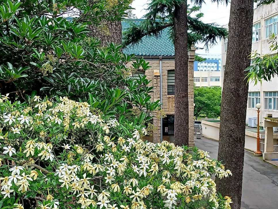 숲 안개 부옇게 감도는 금정산 자락, 석조건물 묵직한 박물관 입구에는 향기 고담한 유백색 치자꽃 피어있었다.