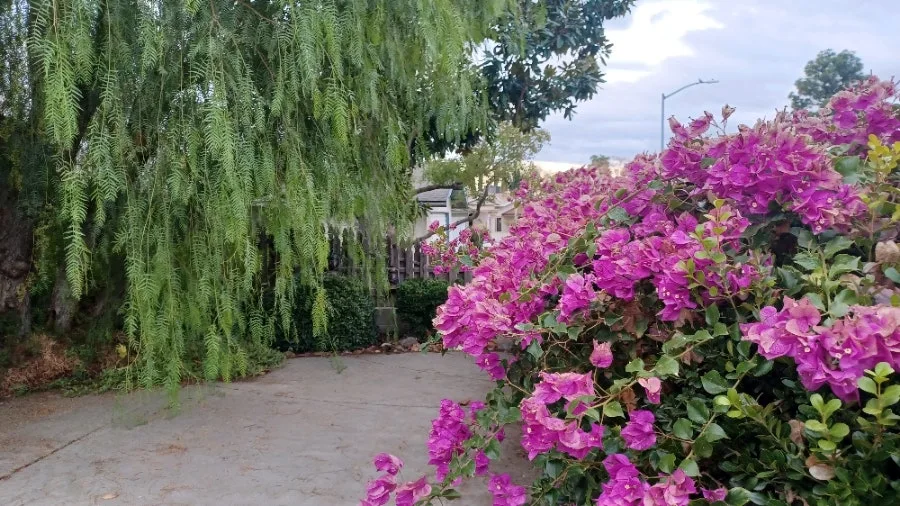 *그로부터 십 년 후 겨울, 몇 해를 코로나로 묶였다가 미국에 가서 딸내미네 새집을 방문했지요. 부겐벨리아 생울타리로 둘러싸인 너른 안뜰에서 노거수 후추나무를 만났어요. 드라이브웨이에서부터 눈에 확 드는 후추나무. 어찌나 반갑던지요. 무엇이든 마음으로 원하면 이루어진 다지요.^^