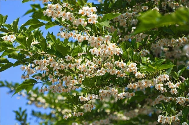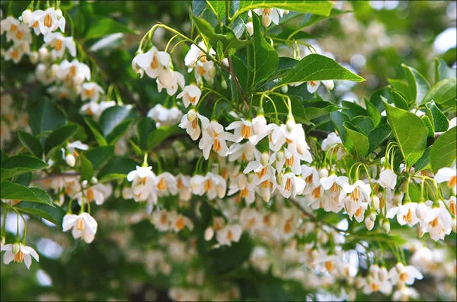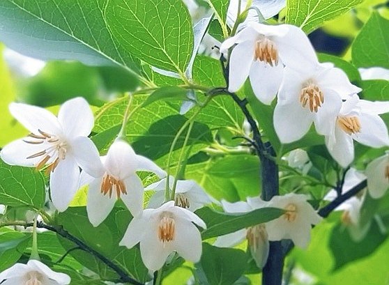 긴 꽃대에 종 모양 꽃이 하얗게 피어나 신록 숲에 향기 풀어내는 이 나무.