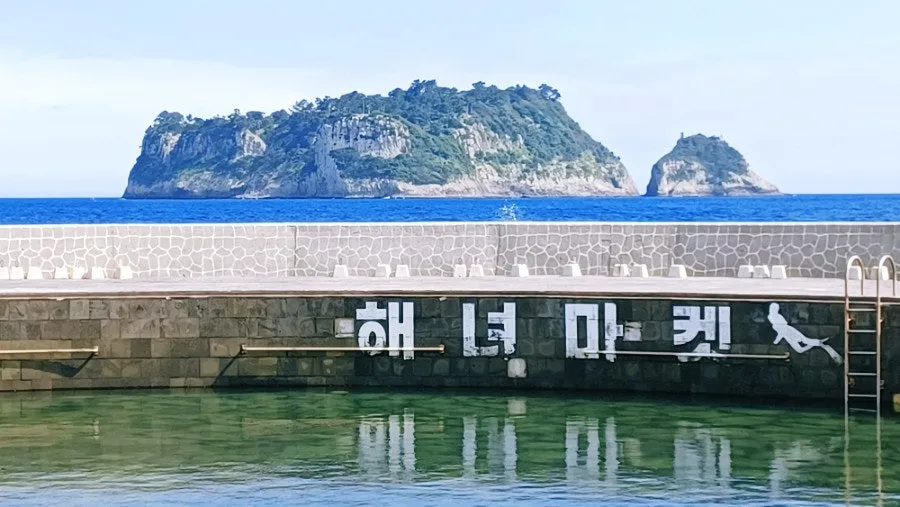 바닷물 끌어들여 만든 해녀 마켓에서는 관광객을 상대로 싱싱한 해산물을 팔았는데 파장인듯 적요.