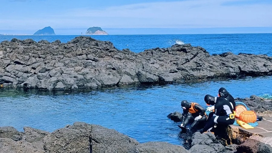 쉼 없이 밀려드는 파도소리, 잠수복을 입은 해녀가 바다에 뛰어들어 물질하는가 싶었는데 해녀학교에서 체험실습 나온 모양이다.