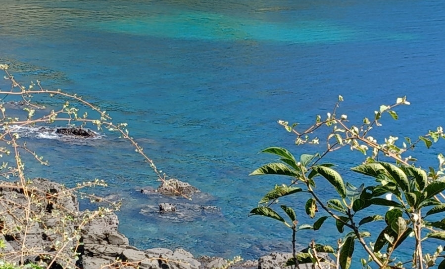 해안 벼랑가에는 해송이며 뭇 덩굴식물과 상록수들이 풋풋한 기운을 전해준다.