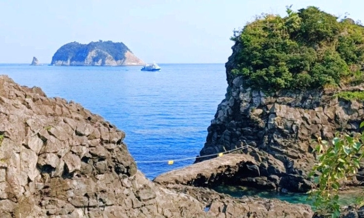 바로 지척거리이지만 해안가 절벽 아래라 가까이 접근할 수는 없다.