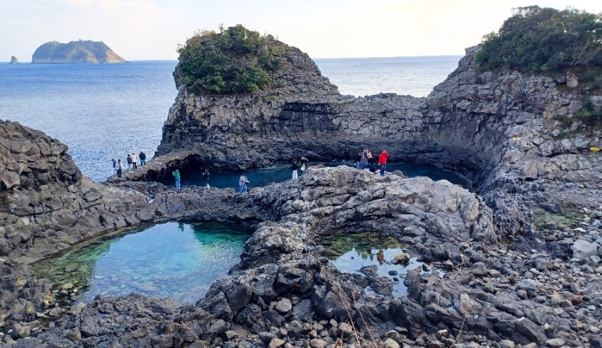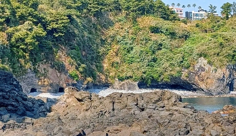 황우지 해안 열두 굴 역시 일제가 서귀포 해안가 돌아가며 인공적으로 파놓은 수많은 진지 동굴의 일부이다.