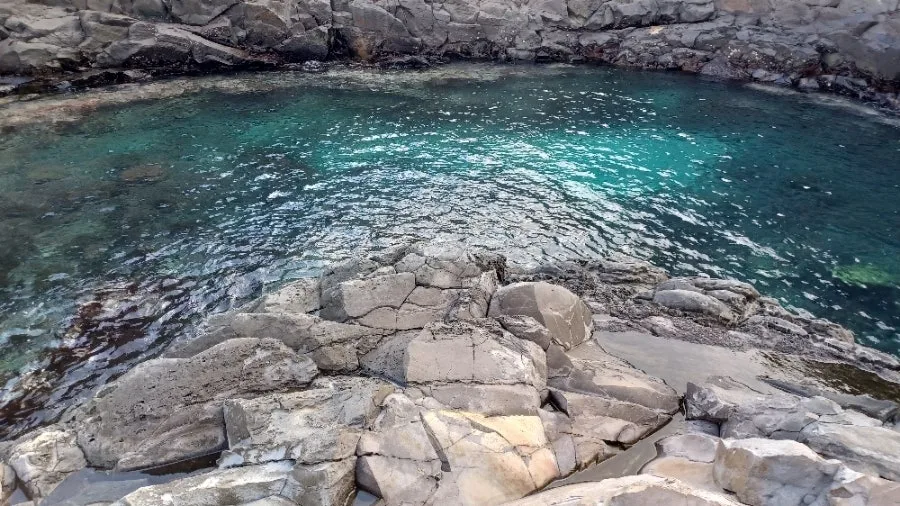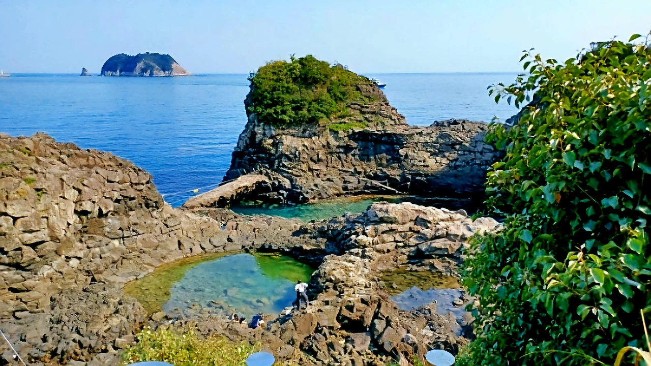 자연 풀장 이룬 진기한 해암 사이 물빛은 보석 같은 데다 새연교가 건너다 보이는 등 주변 여러 절경지와도 연계되는 이곳.