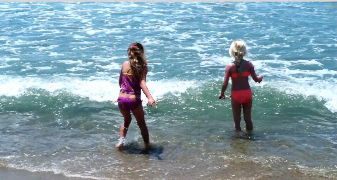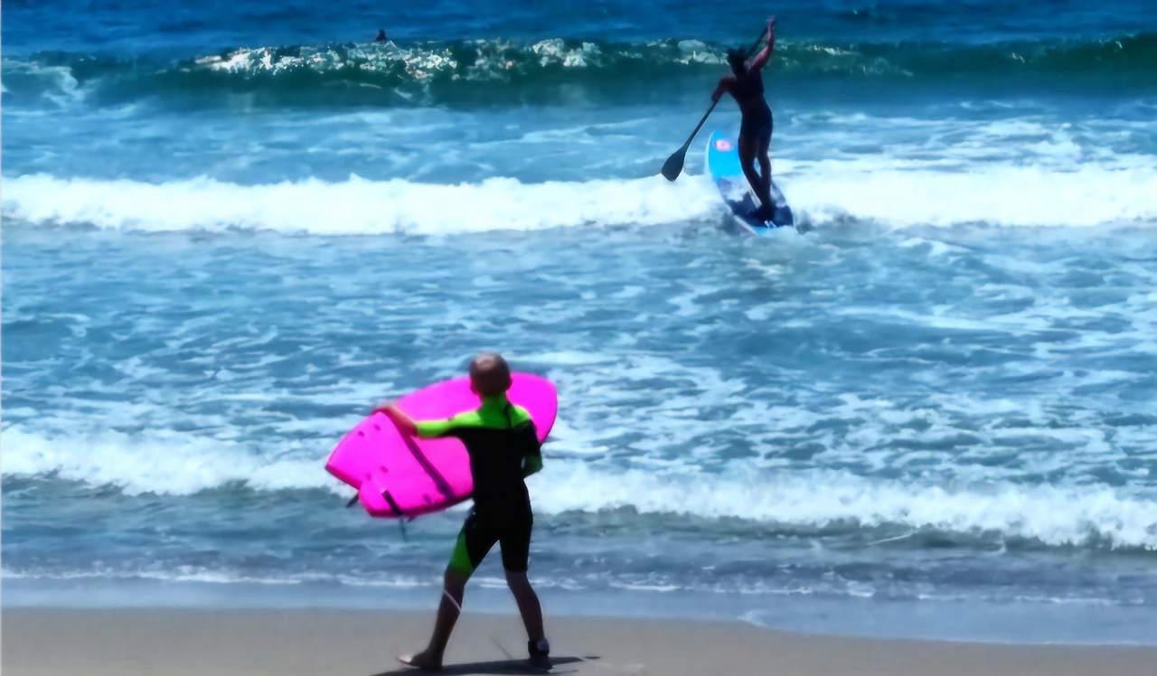 벌써 바다에 뛰어들어 해수욕 즐기는 아이들 파도를 타며 한껏 신이 났다.