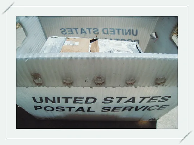 한 겹 비닐을 덮어쓴 데다 밑받침 삼아 우체국 플라스틱 통에 담긴 채로요.