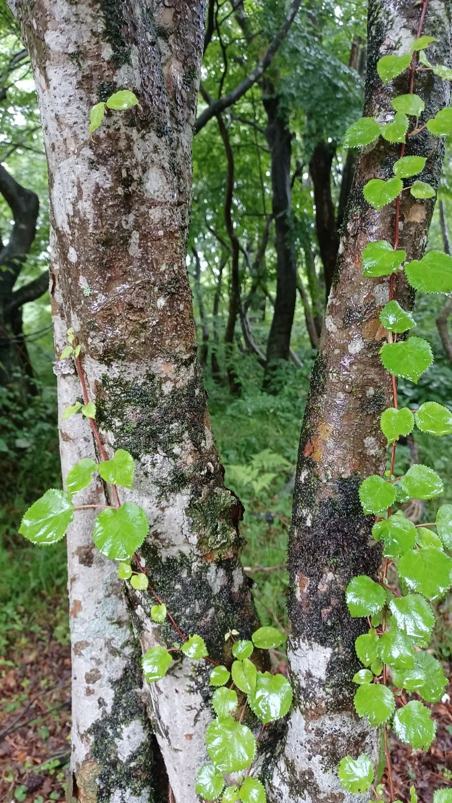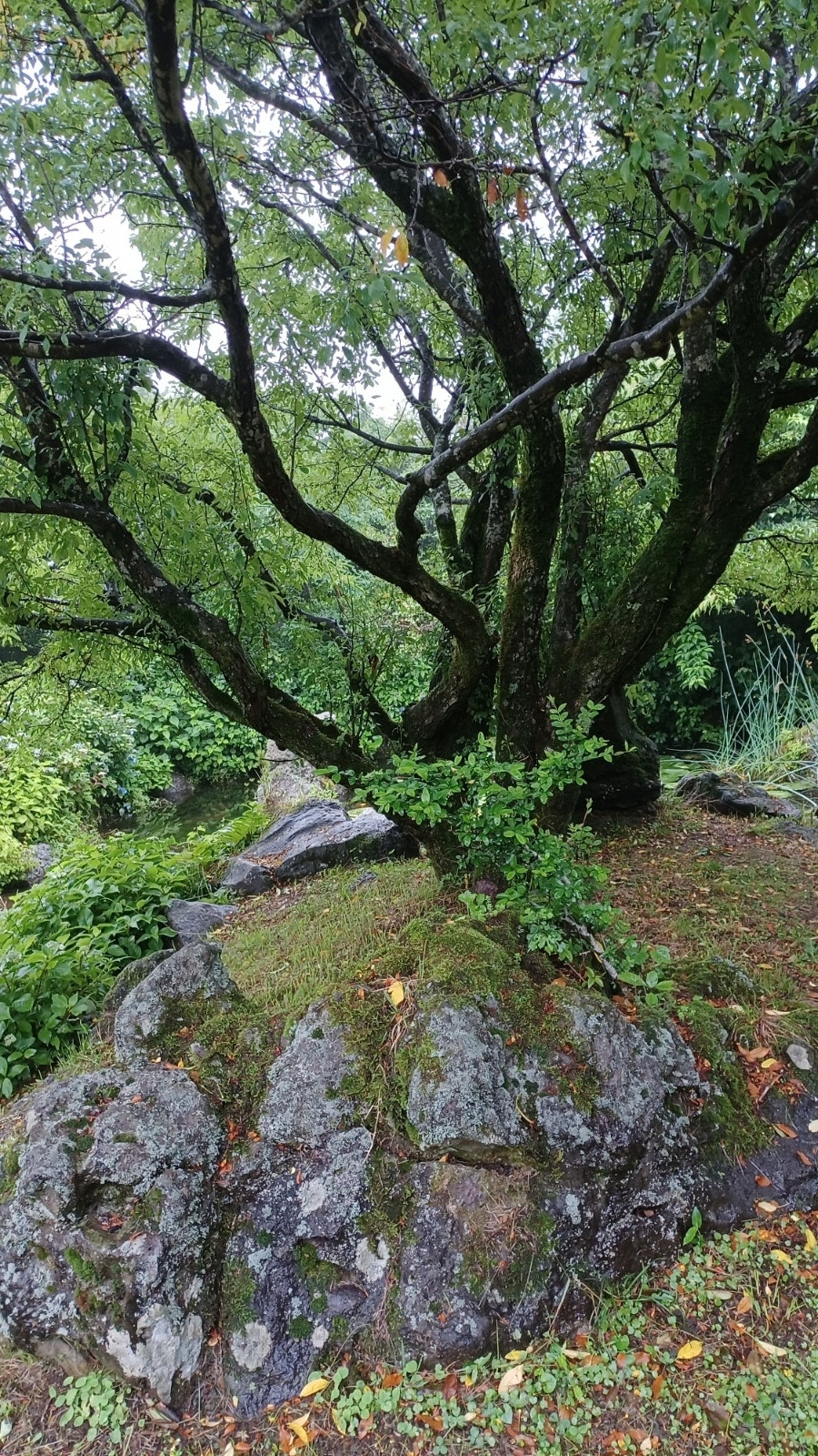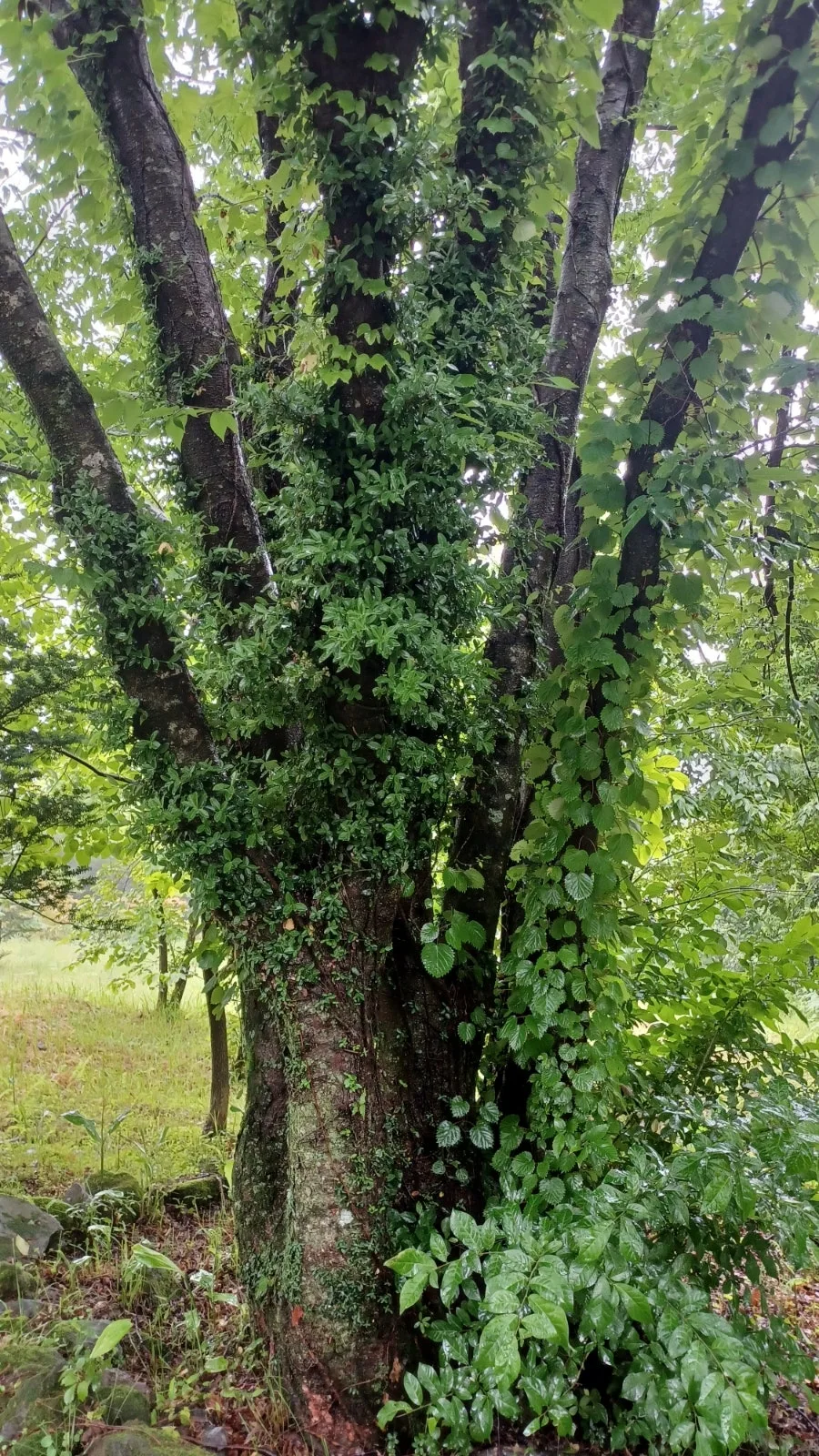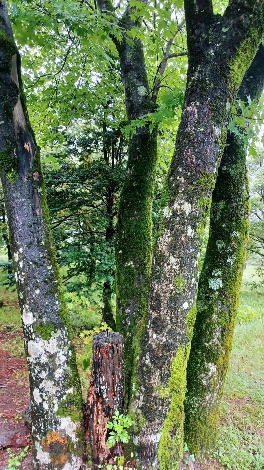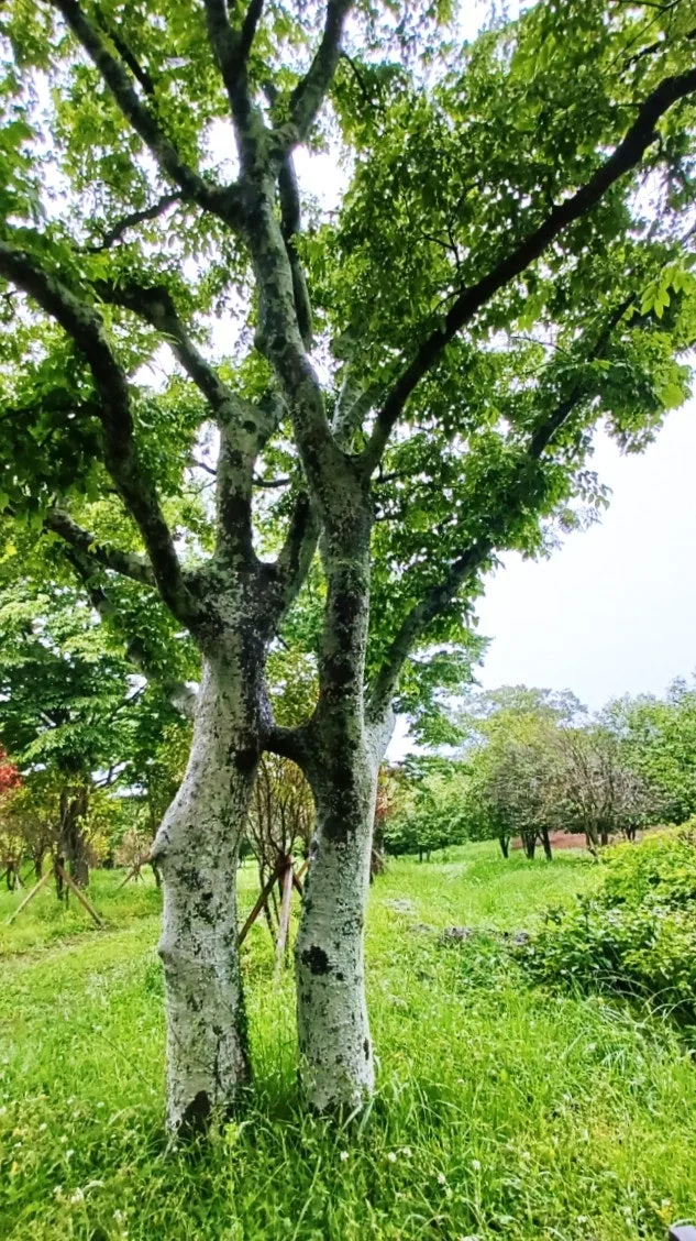수종 다른 고로쇠나무와 때죽나무가 긴 세월, 서로를 아끼고 격려하면서 드디어 하나를 이루었다.