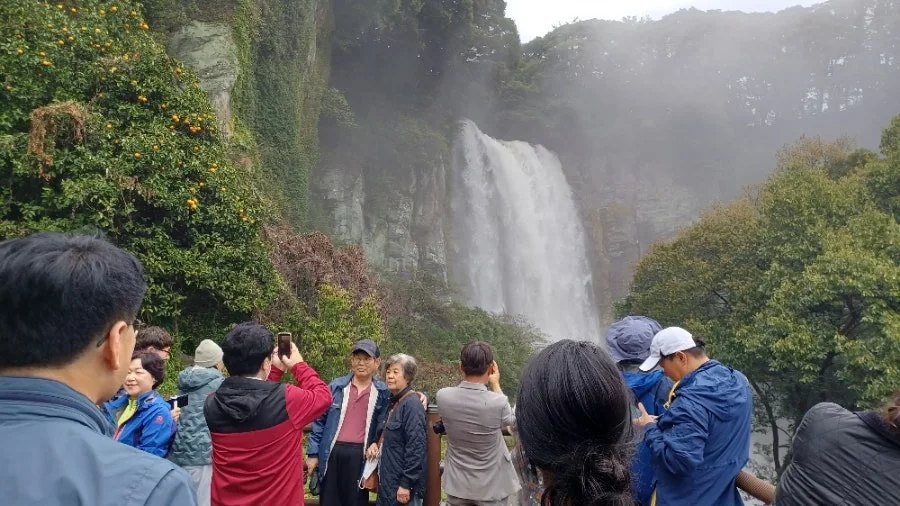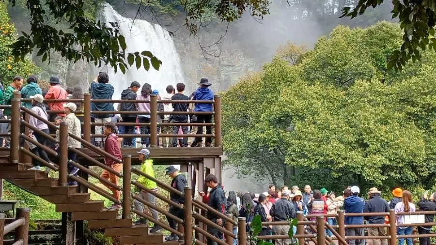 전망대 올라 폭포 목전에서 마주하면 다들 유구무언, 감탄사조차 잦아들고 만다.