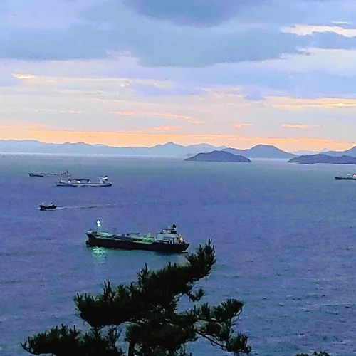 남항 조망터에 서니 거제도 가덕도 몰운대가 놀 속에 몽실몽실 떠올랐다.