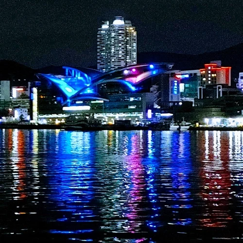 밤바다에 내린 오색 별이 반짝반짝 출렁출렁 찬연히 명멸한다.