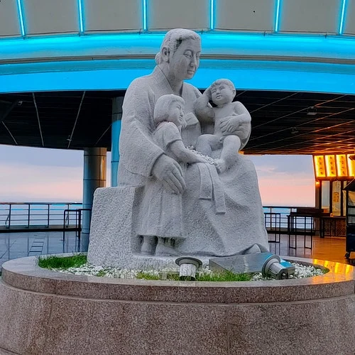 두 자녀 품어 안은 모자상도 입체감 도드라지며 화색이 돈다.