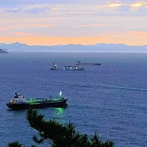 근해에서 연안 조업에 들어가 투망질하는 크고 작은 고깃배들, 집어등 환히 밝혔다.