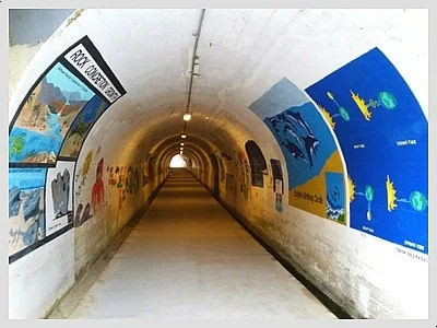 크리스탈 코브 뒤로하고 차도 향해 오두막 늘어선 골목길 오르다 만난 작은 터널,