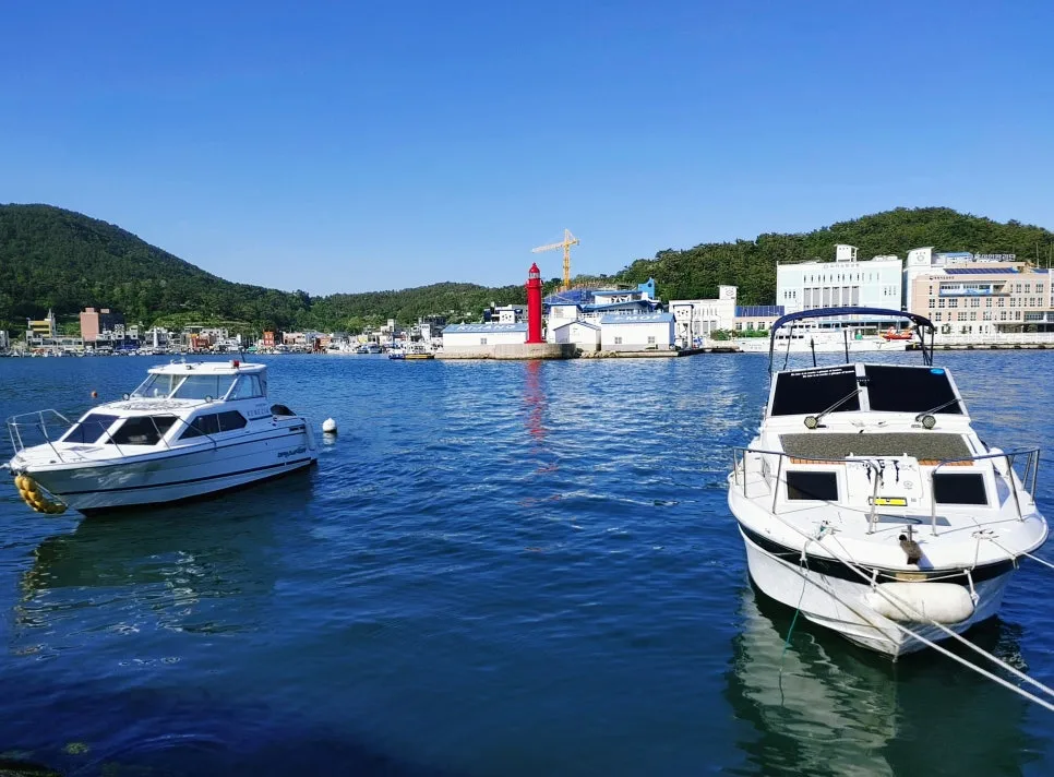 새하얀 소형 요트가 뜬 청남빛 바다 빛깔만으로야 유럽의 어느 휴양지 같은 마을이다.