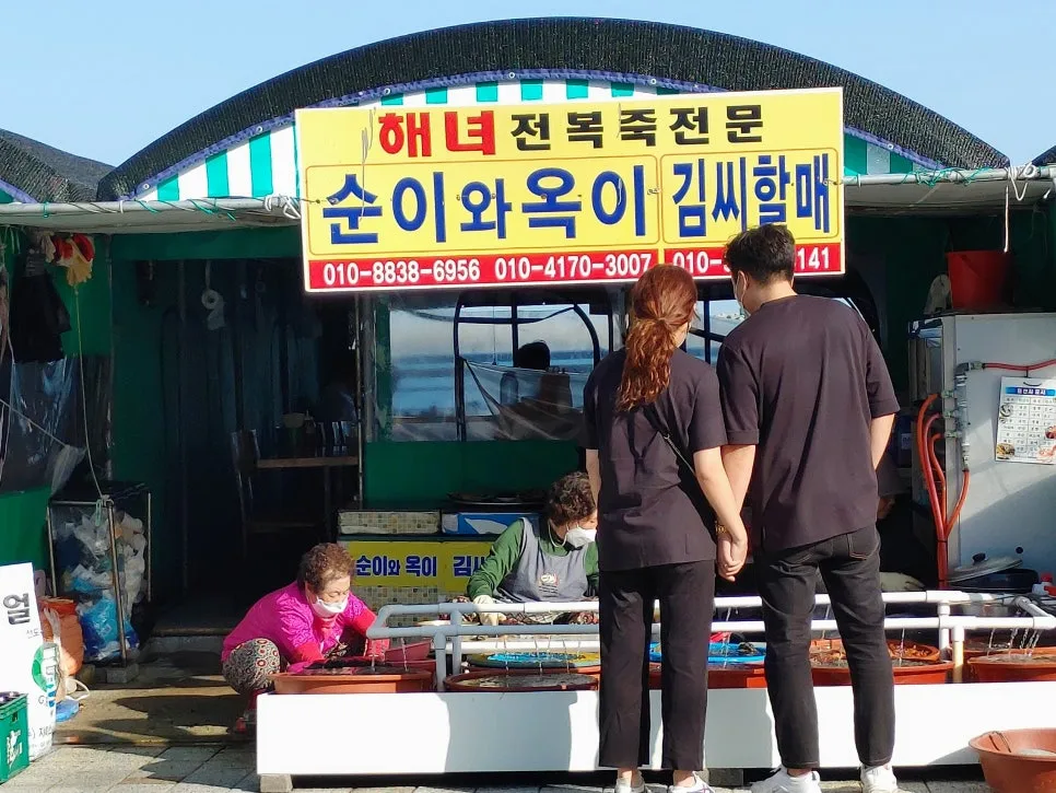 사철 없이 해풍에 그을린 억센 해녀 할매 생활전선인 가게 간판과 곳곳에서 마주하게 된다.