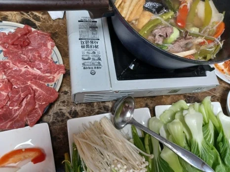 한국 음식 골고루 마련해 전통 생일 상차림을 하기엔 바쁘기도 하고 단출한 살림에 그릇도 부족해 손쉬운 샤부샤부를 준비했다.
