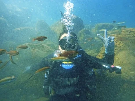위 사진은 그녀가 서귀포 문섬에서 스쿠버다이빙을 하며 찍었다면서 보내왔다.