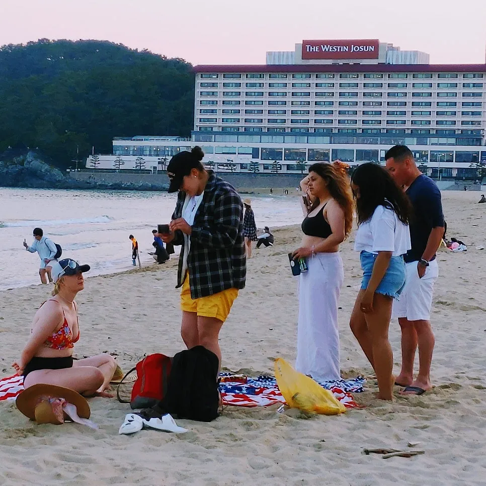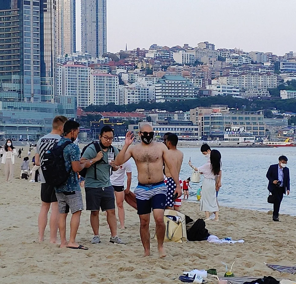 나중에 안 일이지만 전날 밤부터 메모리얼 데이 연휴를 즐기는 미국인들이 2천 명이나 해운대에 몰려들었다고 해요.