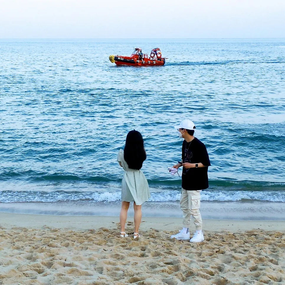 휴일이기도 하여 한낮보다는 한적한 오후 늦게 바다 앞에 섰는데요.