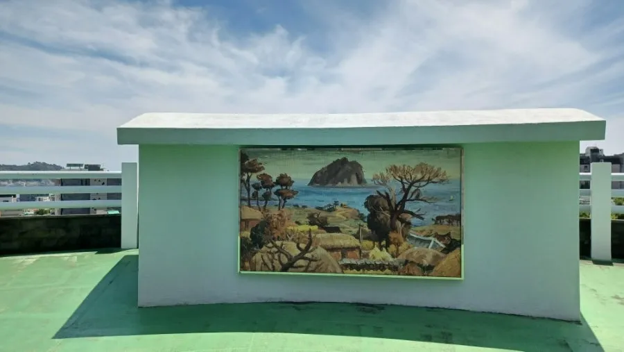 번번 궂은 날씨에만 찾았던지라 섶섬이 보이는 옥상을 올라가 본 적이 없어 단숨에 주르륵 꼭대기로 향했다.
