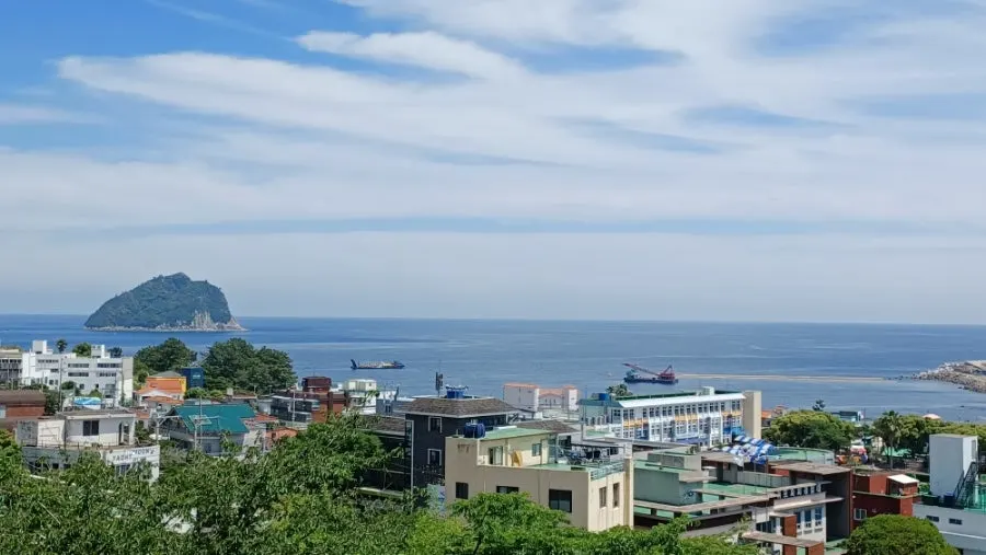 섶섬을 띄운 서귀포 앞바다는 더없이 청푸르고 적당히 구름 깔린 하늘빛 평화로웠다.