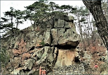 높다랗게 쌓아 올린 축대가 보이면 이어서 가파른 돌계단 이어지고 저만치 소나무 사이로 암벽이 드러나더이다.