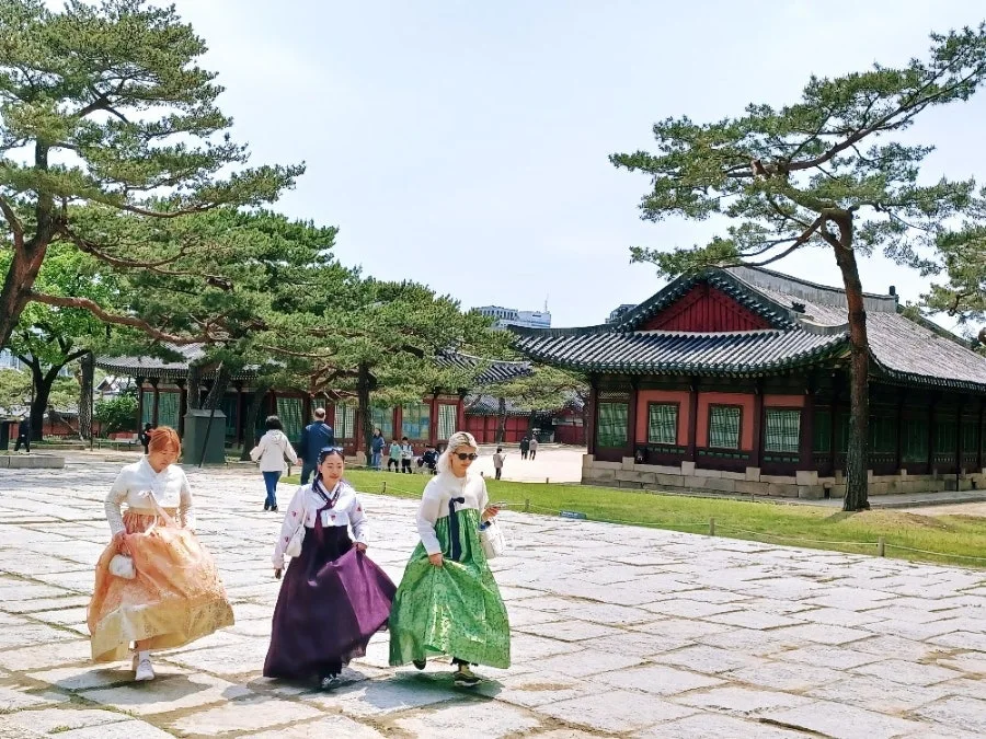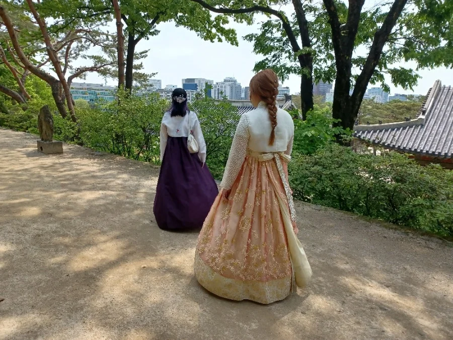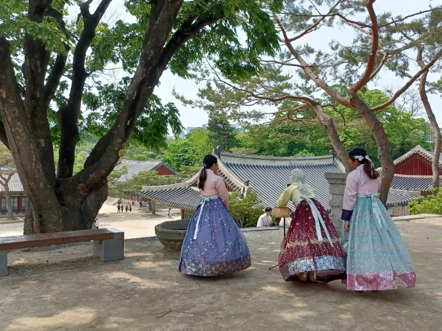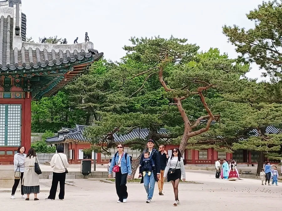 궐내 여기저기엔 한복 곱게 차려입고 산책하며 사진 찍는 외국인들이 많았다.