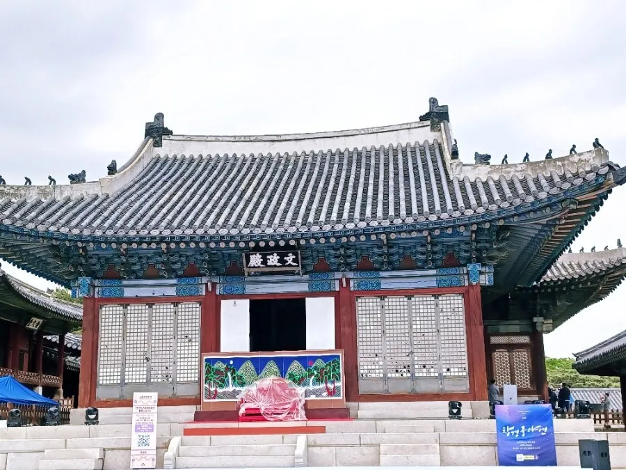 그날 때마침 문정전 뜰에서 궁중문화 축전 행사가 무대 준비를 하는 중이었다.