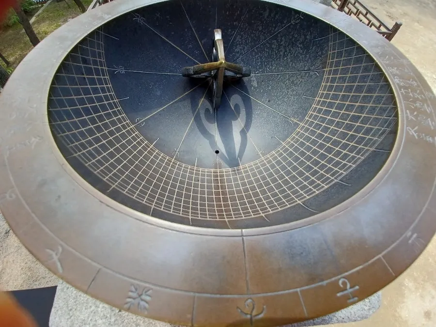 그 앞 궁중 뜰에 설치된 해시계가 눈길 끌었다.