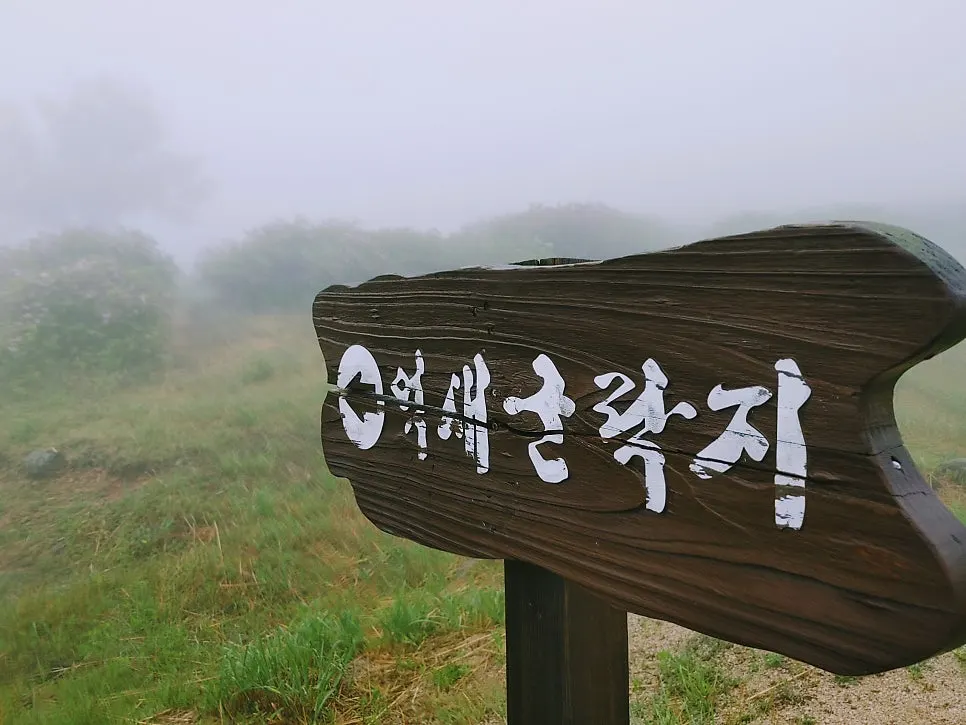 시설이 완비돼 있는 오토캠핑장에 주차시키고 잘 다듬어진 산행로 따라 우리도 자욱한 안갯속을 걸어 올라갔다.