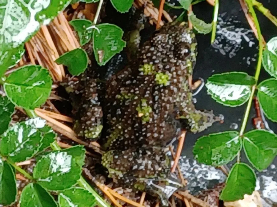 등짝에 초록 점찍은 두꺼비만 위장한 채 눈 꿈벅.