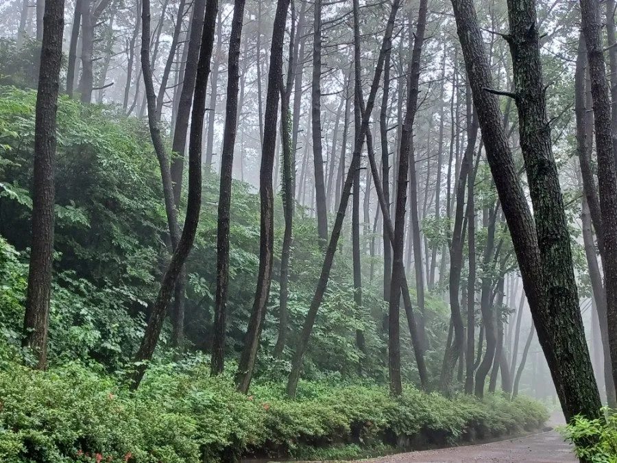 산을 내려와도 여전 젖어드는 비, 뒤죽박죽 기이한 세태 닮아 장마철도 성급히 달겨드는가 보다.