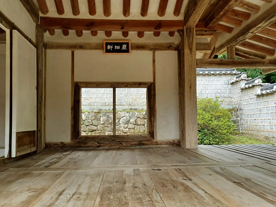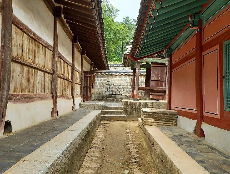 모든 벽을 나무판벽으로 만들어 습기 흡수, 목판을 보관하던 장판각(藏板閣) /제자들이 기숙하던 고직사 동재의 간소한 부엌