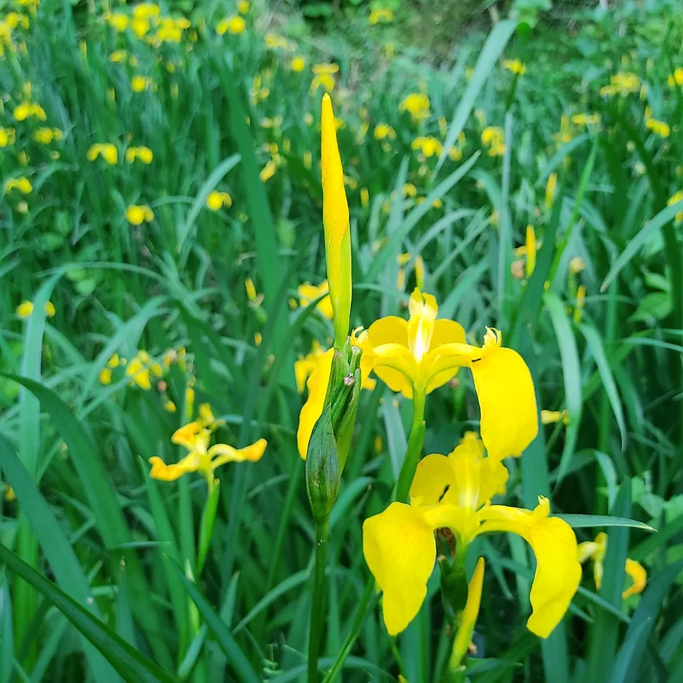 그 발치에 클로버 꽃 조밀하게 깔려있고 수로 쪽에는 노란 꽃창포 만개해 눈이 부시다.