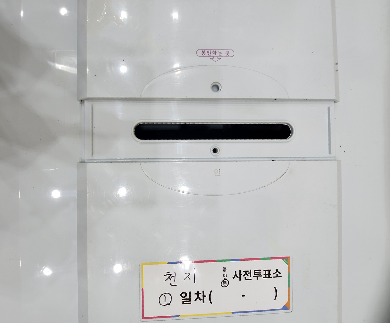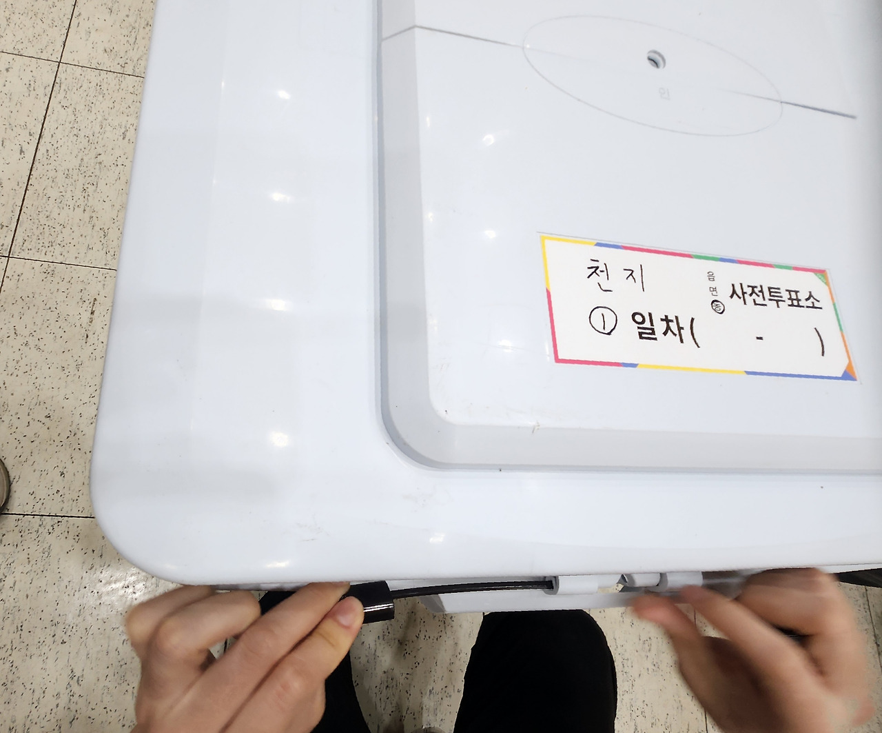 삼십 분 전에 미리 특수봉인된 투표용지 발급기와 명부 단말기인 노트북 PC 그리고 투표함의 봉인 해제를 참관인 모두가 동참 확인했다.