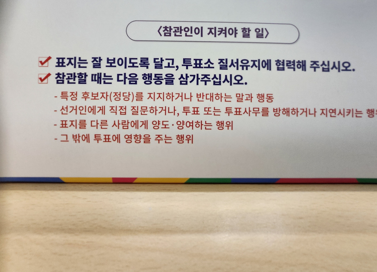 흥미로운 구경감이랄 수는 없지만 투표장이라는 특별하고도 생소한 공간에서 현장체험을 할 수 있어서 나로선 나름 귀하고도 값진 시간이었다.