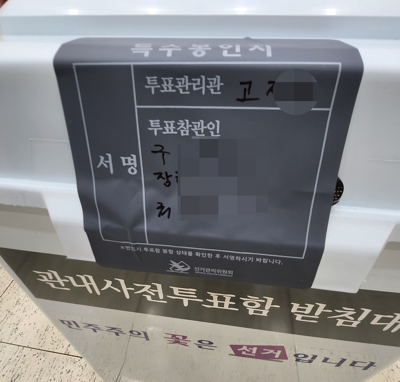 여기서 관외선거인은 주소라벨이 부착된 회송용 봉투와 투표용지를 교부받았다.