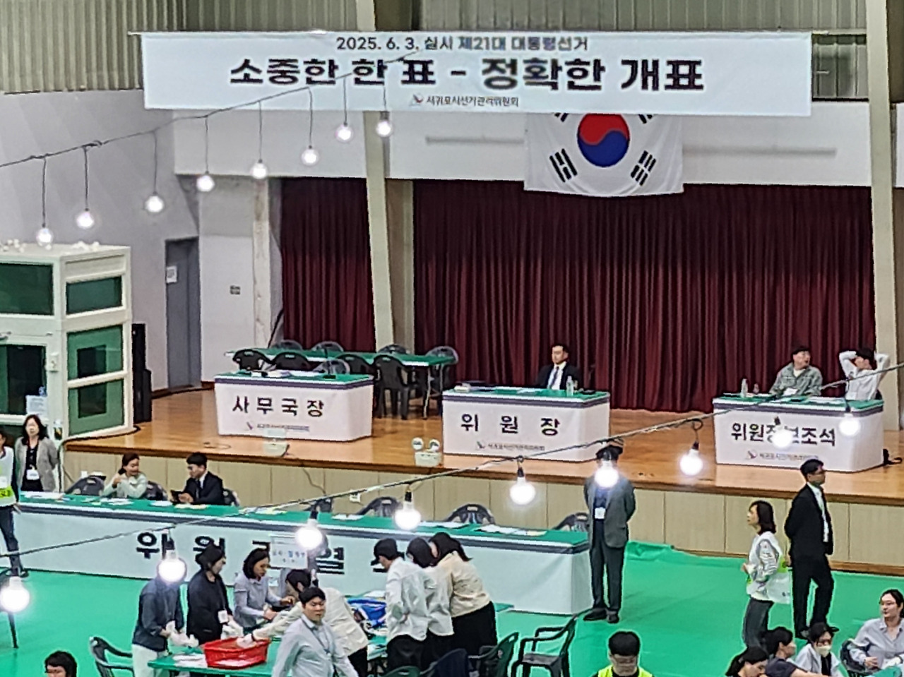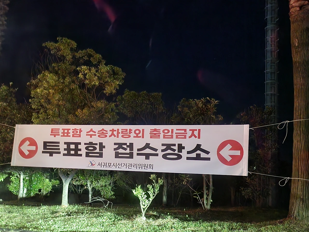 깜깜한 어둠 속을 달려 남원읍 공천포전지훈련센터 다목적체육관에 마련된 서귀포시 개표장에 닿았다.