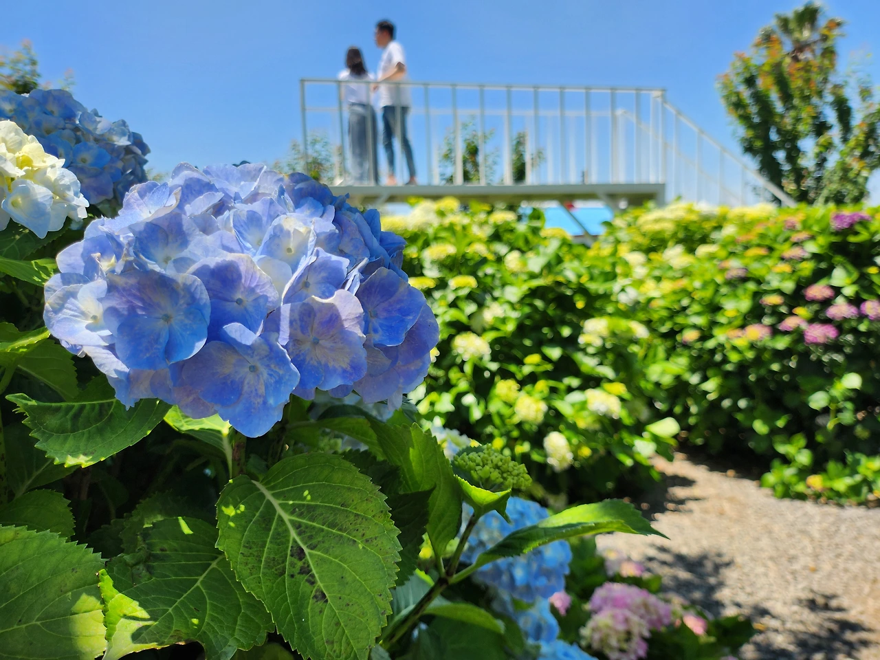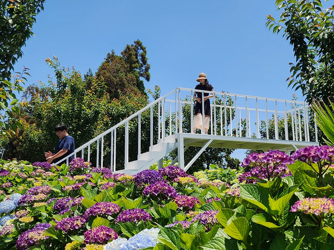 수국밭 곳곳의 전망대와 스토리가 있게 꾸며진 포토존 오밀조밀하나 수국이 풍성하다는 느낌은 아직...
