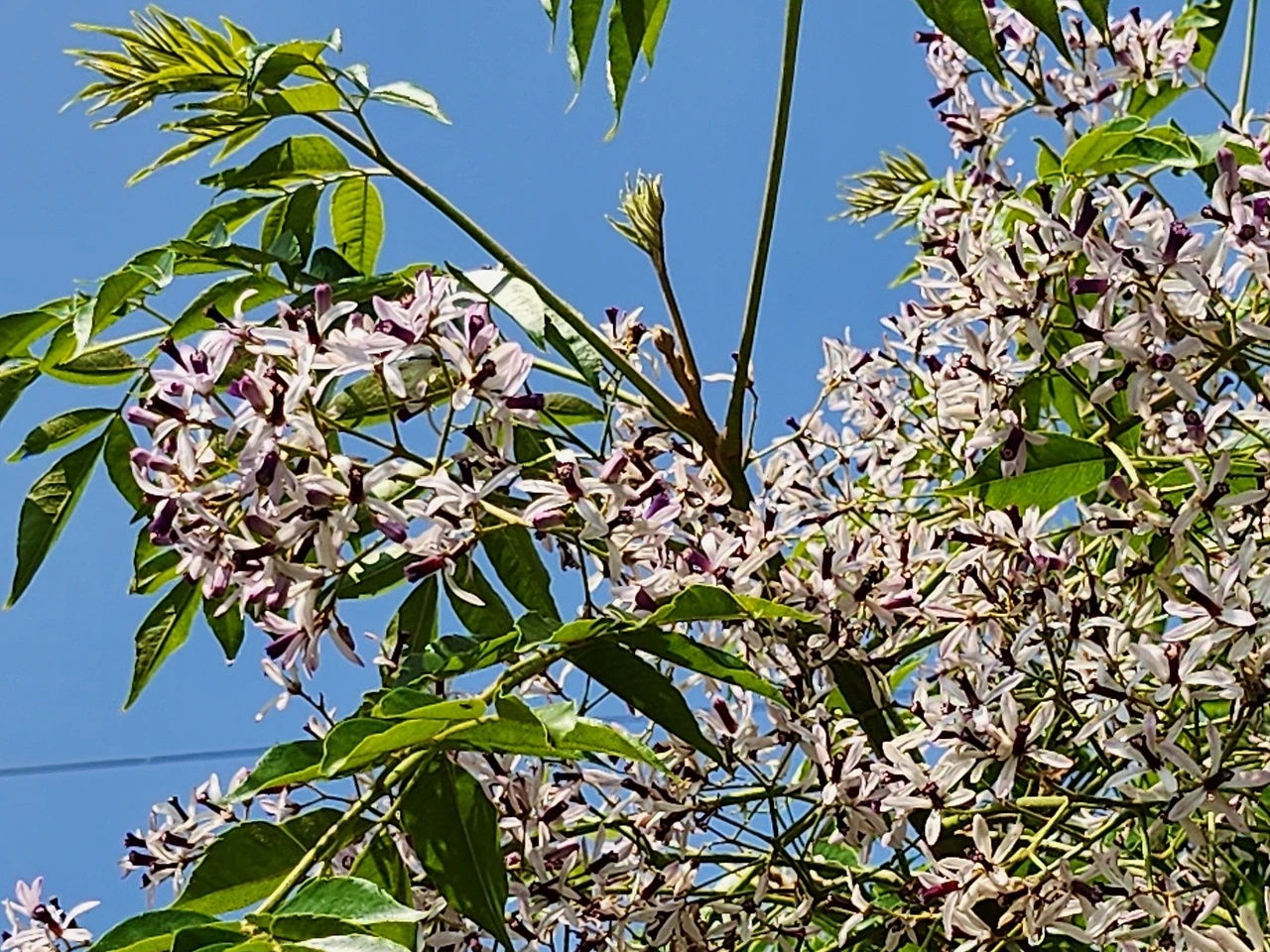 하늘은 청푸르고 상쾌한 바람결 따라 활짝 핀 멀구슬나무 연보라꽃 향훈이 스며들었다.