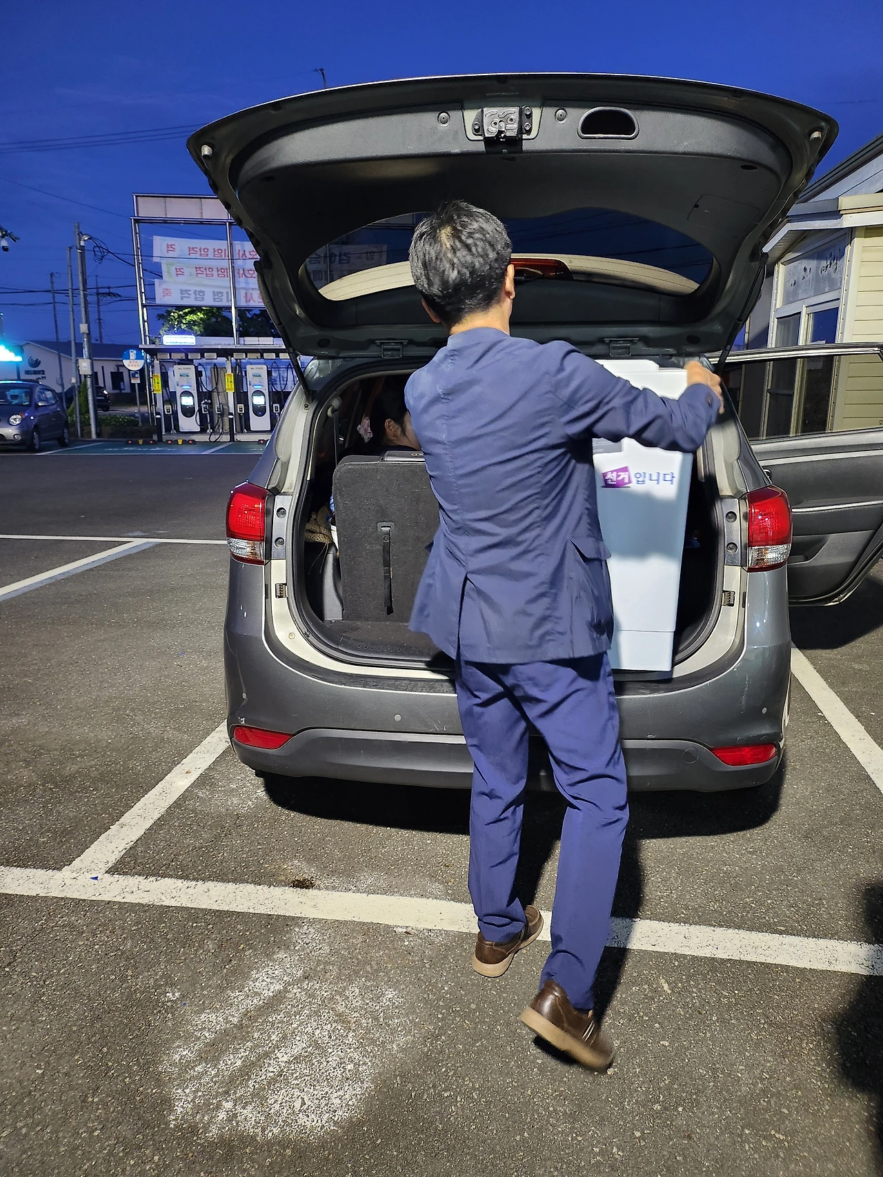 겨우겨우 차례가 와 이송한 투표함을 개표참관인의 참관 하에 투표함 상단의 관리번호를 확인한 후 접수시키므로 오늘 임무는 완료, 시각은 열 시 가까웠다.