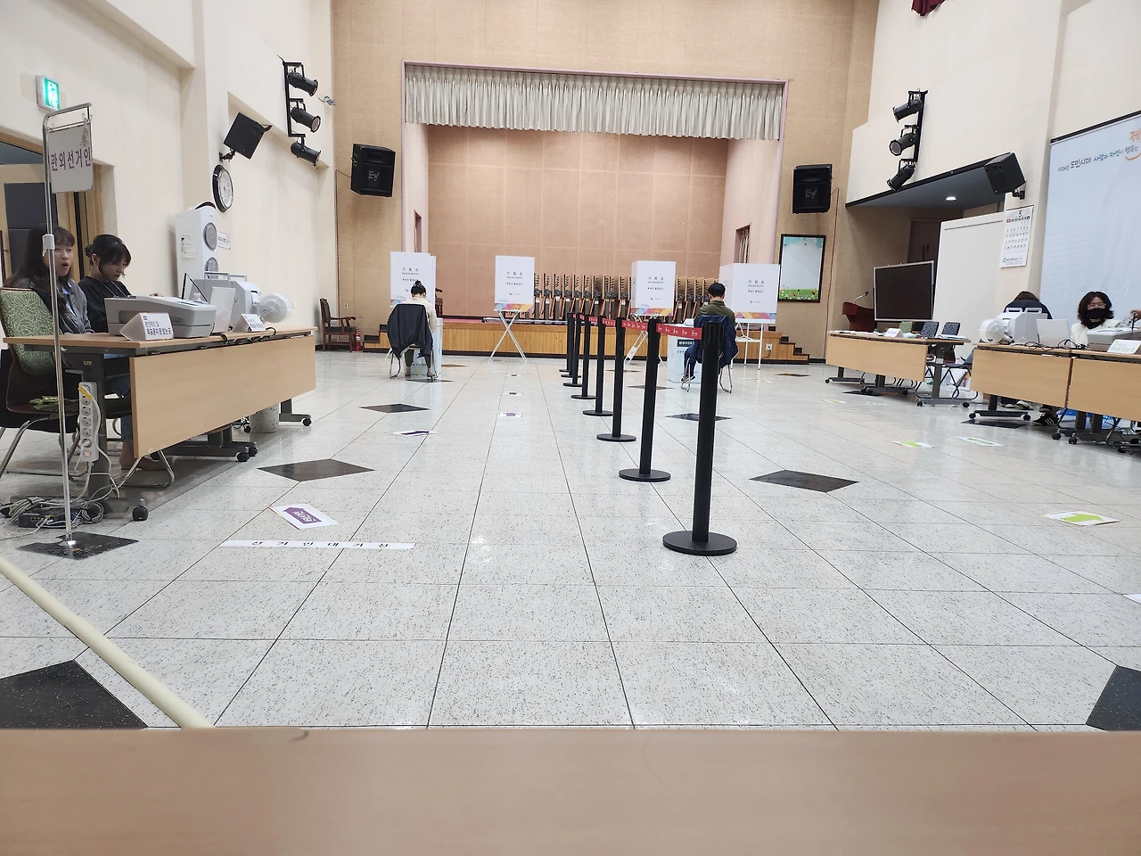 어슴푸레한 새벽 다섯 시 반, 걸어서 갈 수 있는 가까운 평생교육관 일층 사전투표장에 도착했다.