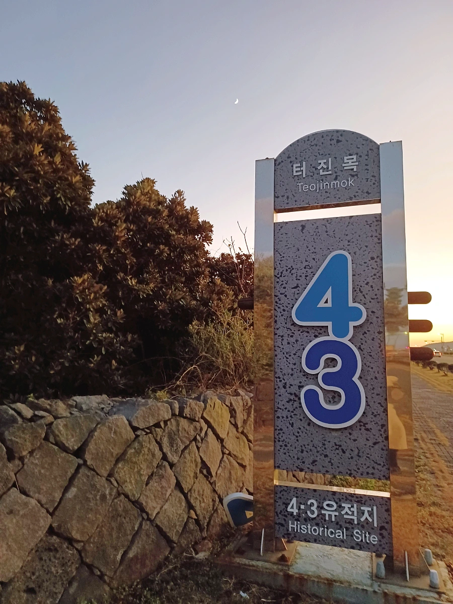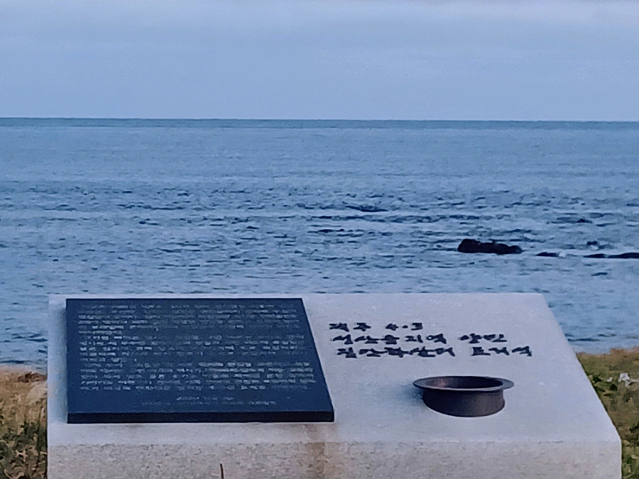 해 질 무렵, 파도 철썩이는 소리 처연하게 들리던 4·3 학살 유적지는 금세 어둠의 우수 속으로 가라앉았다.