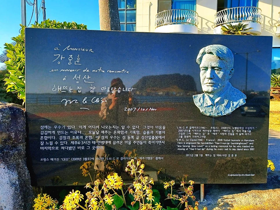 해뜨는 집 정원에서 마주한 낯선 외국인 소조상, 웬일로 프랑스 소설가인 장마리 귀스타브 르 클레지오다.