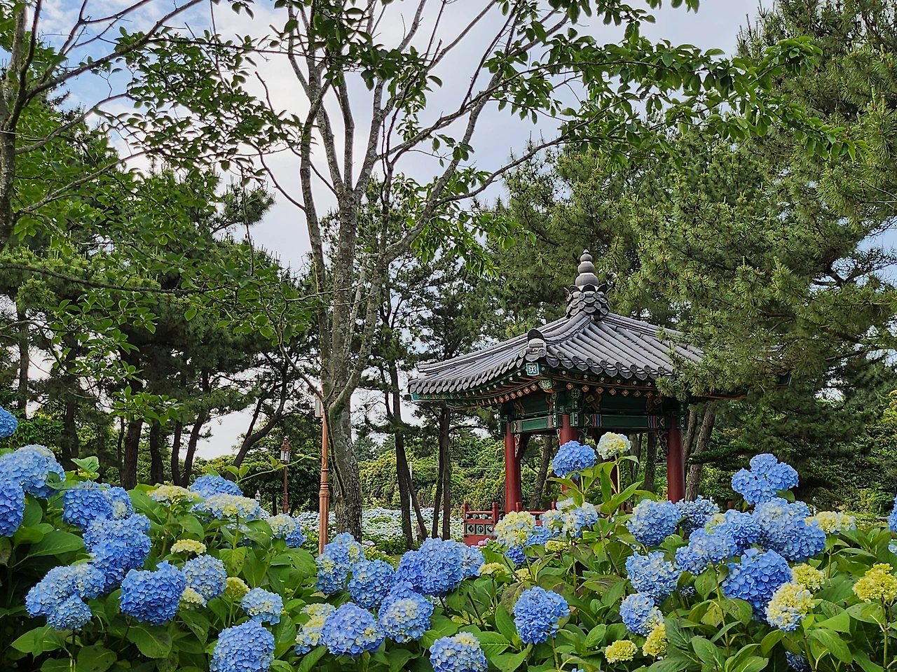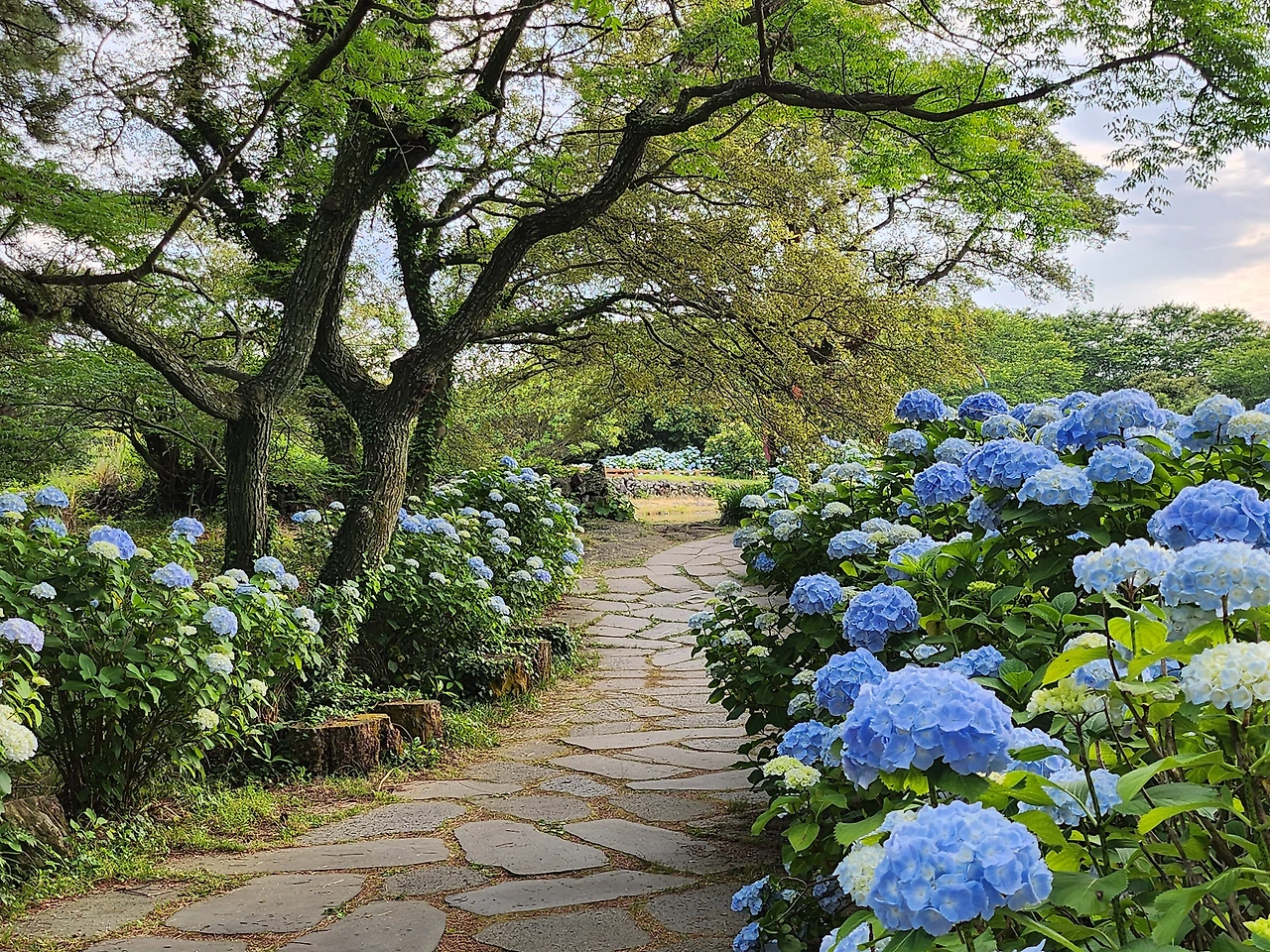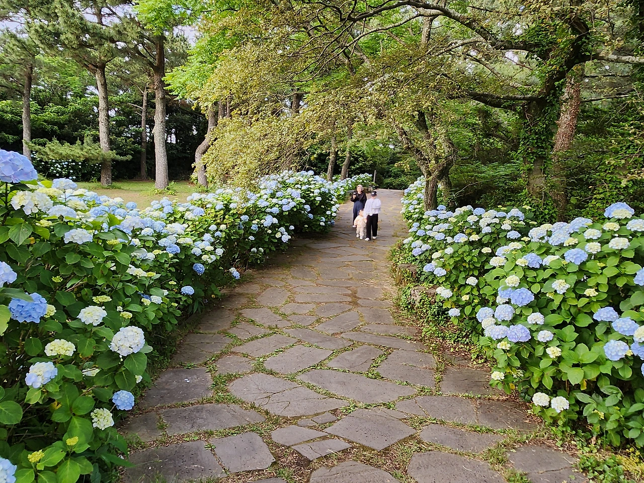 특징이라면 푸른 수국만으로 가꿔진 데다 해맑은 새소리 덤으로 즐길 수 있어서 꼭 찾는 곳이다.